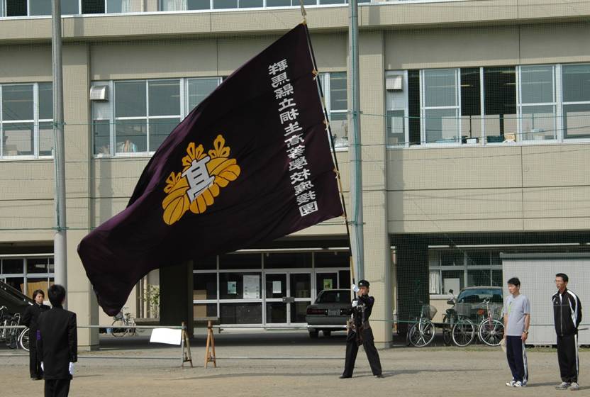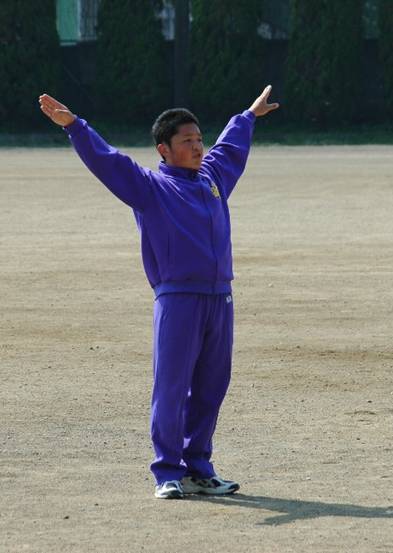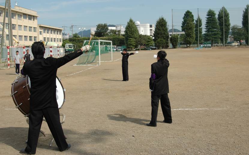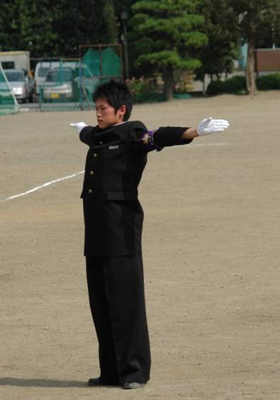 ![]() リーダー、旗手、バックの姿勢 全て良い 顧問先生と 松本君は、もっと胸を開くと良い |