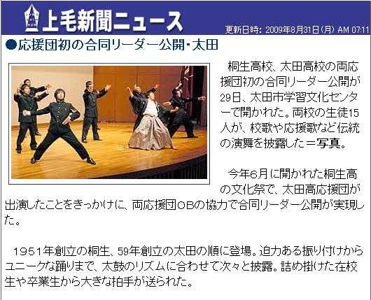 ************ 2009年 8月 31日 上毛新聞ニュース ***************